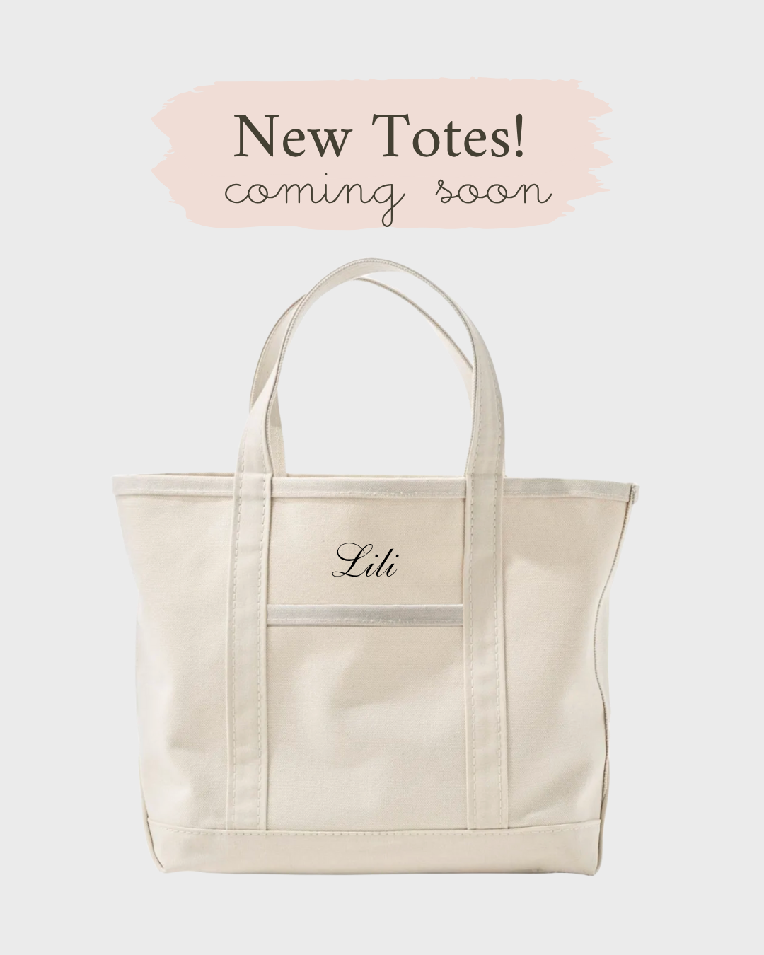 Perfectly sized, heavyweight cotton canvas tote bags~ embroidered with personalisation and artwork