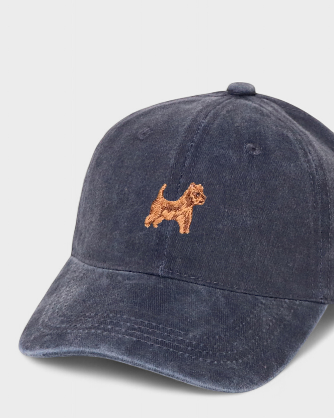 Our Australian Terrier Personalised Hat features our hand-drawn Australian Terrier embroidered design on the front and your choice of personalised embroidery on the back in our custom block or script font. This personalised hat is Ideal for those with a loveable Aussie Terrier in their lives.