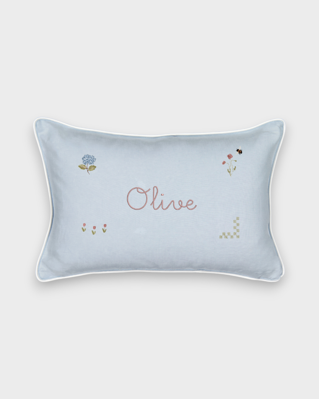 - Custom cushion insert is included with the embroidered cover