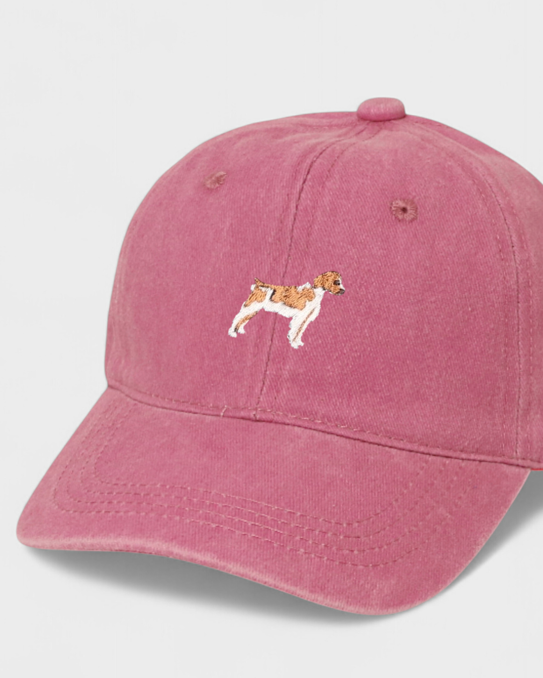 Pink Brittany Spaniel personalised cotton baseball hat with embroidered dog design