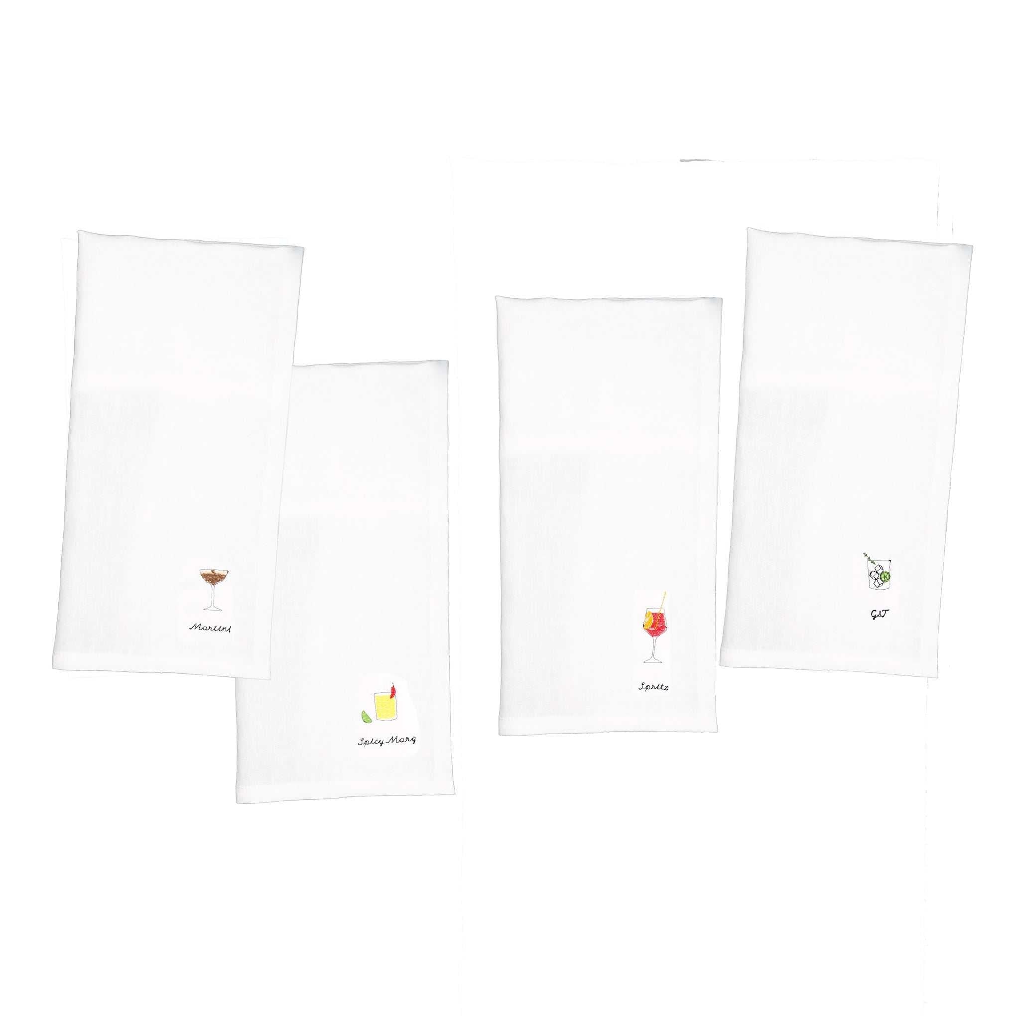Embroidery Designs Include a spicy margarita, espresso martini, G&T, and a Spritz.