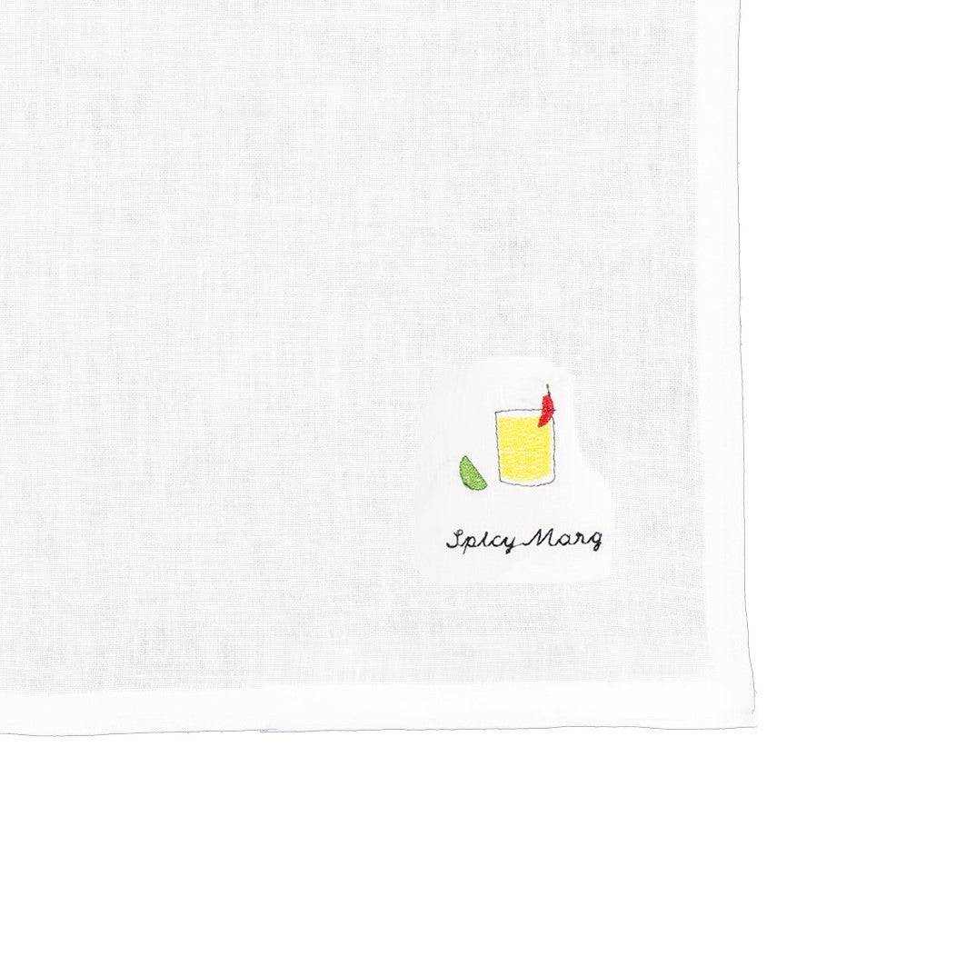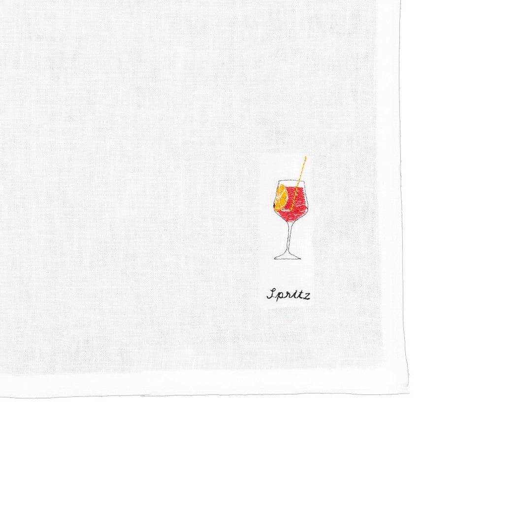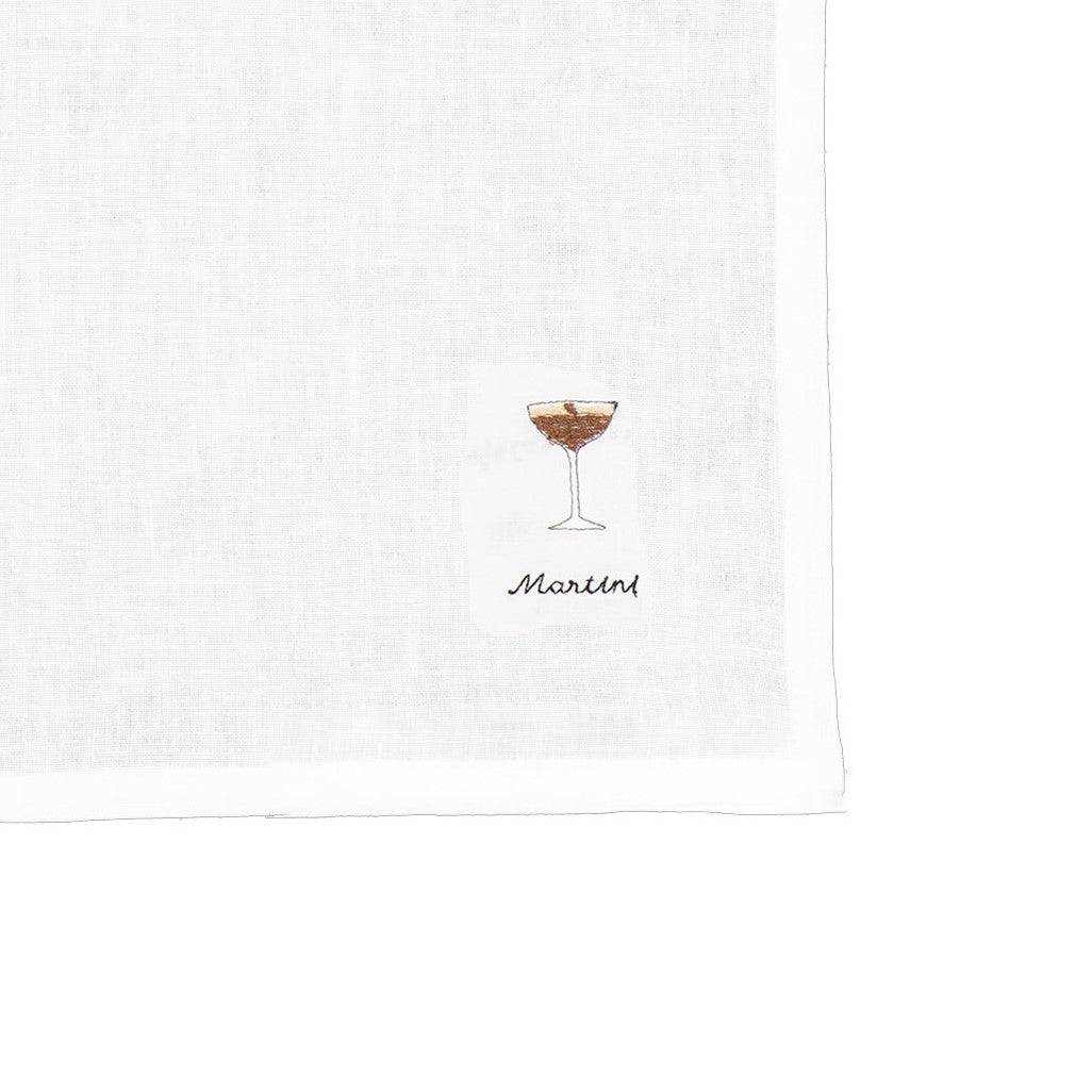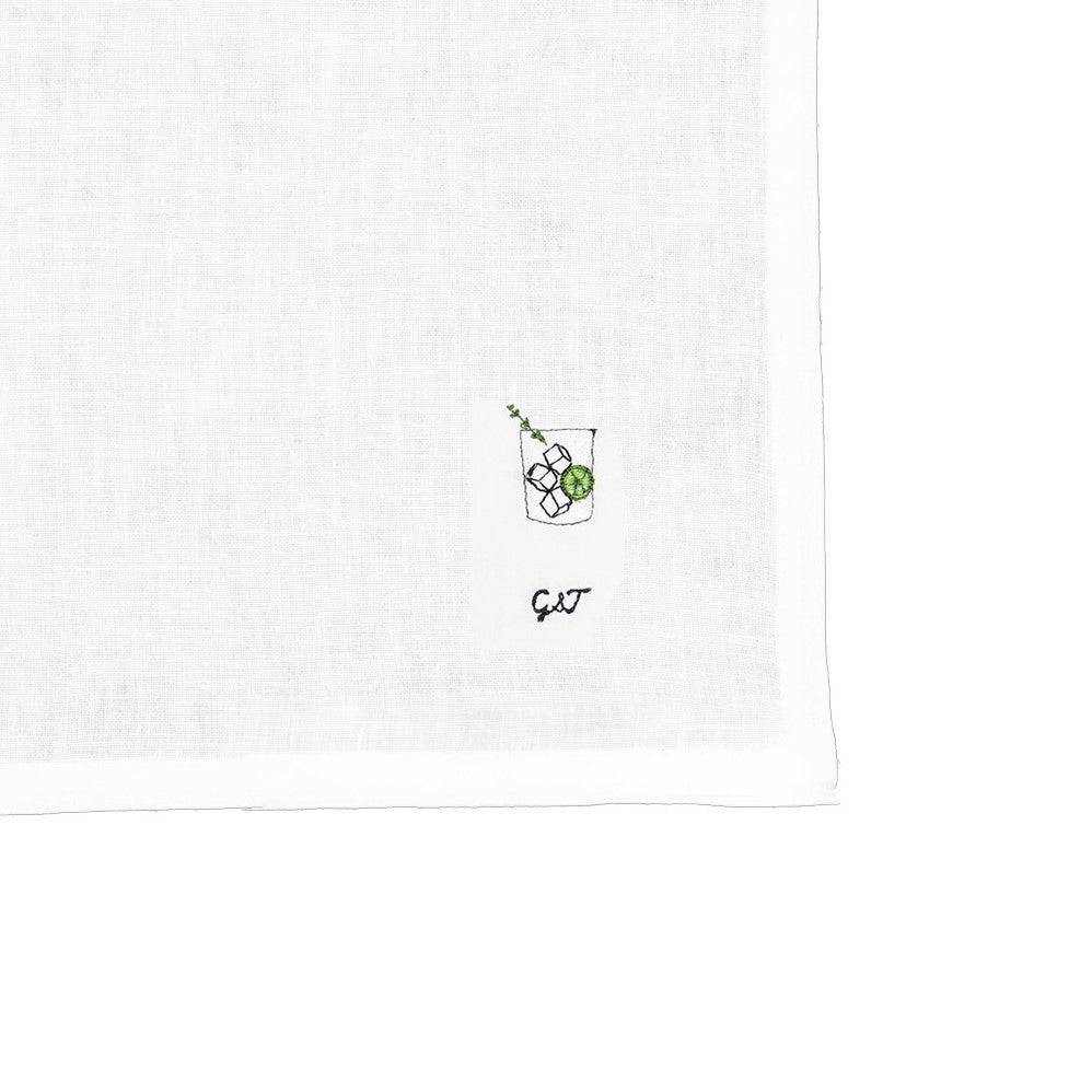 This Cocktail Napkin Collection includes four unique embroidery designs embroidered on Ivory Linen Napkins.