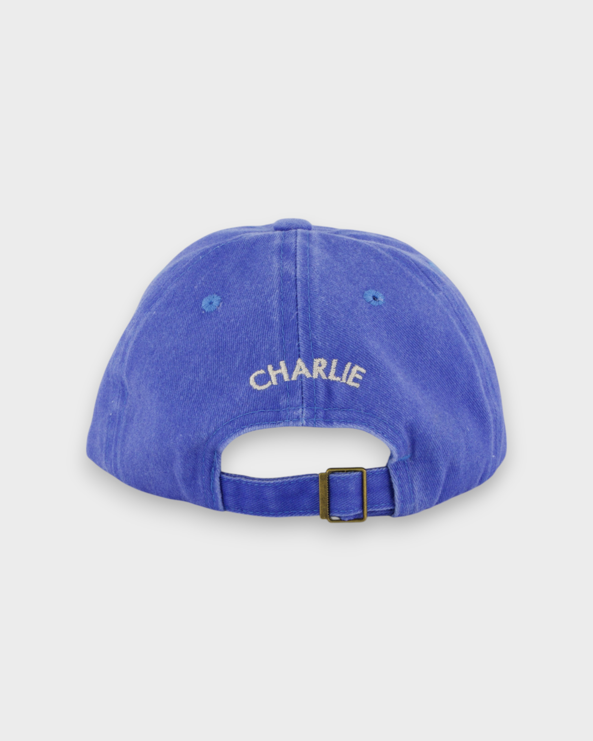Personalised, embroidered cap, reminiscent of summer days spent in the sand and salt water- featuring embroidered text on the front and your choice of personalised embroidery on the back in our custom block or script font.