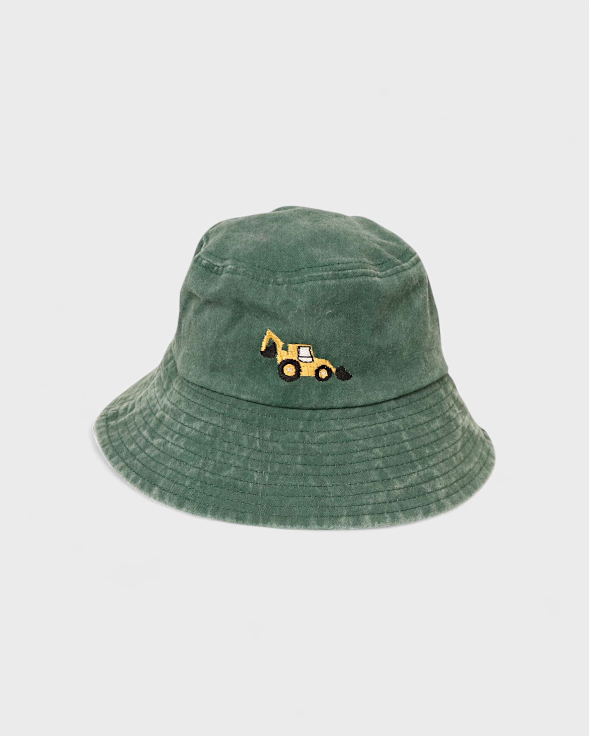 Digger Personalised Bucket Hat for kids, embroidered design, 100% washed cotton.