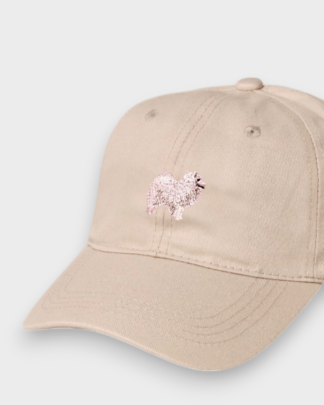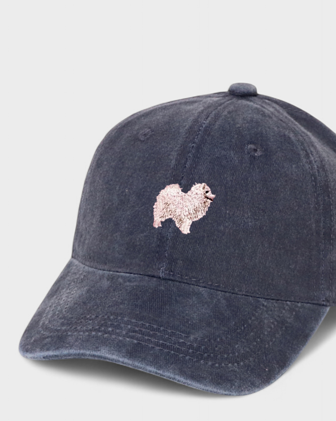 Our Japanese Spitz Personalised Hat features our hand-drawn Japanese Spitz embroidered design on the front and your choice of personalised embroidery on the back in our custom block or script font. This personalised hat is Ideal for those with a loveable Japanese Spitz in their lives.
