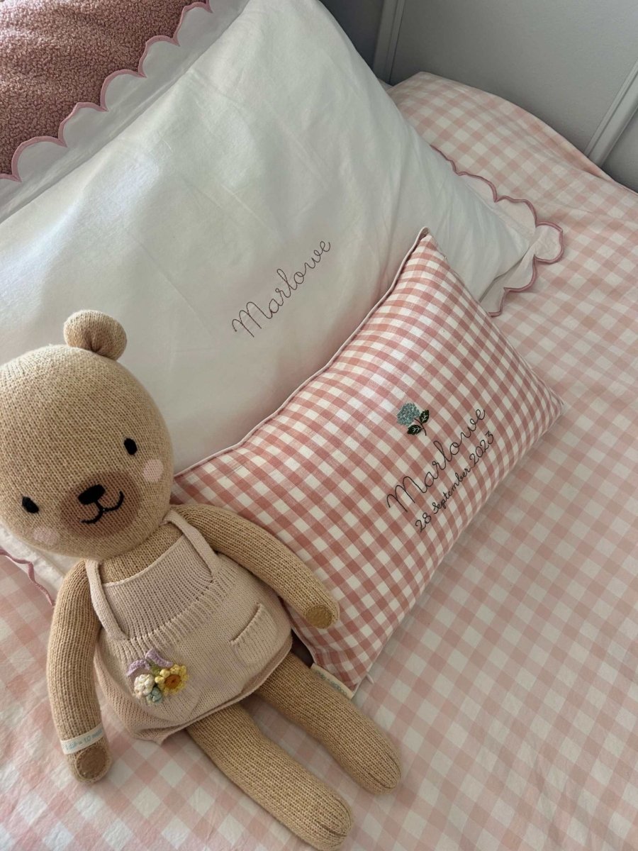- Up to 2 lines of embroidered personalisation is included for you to add a name, date, or quote to make this a one-of-a-kind heirloom or gift.