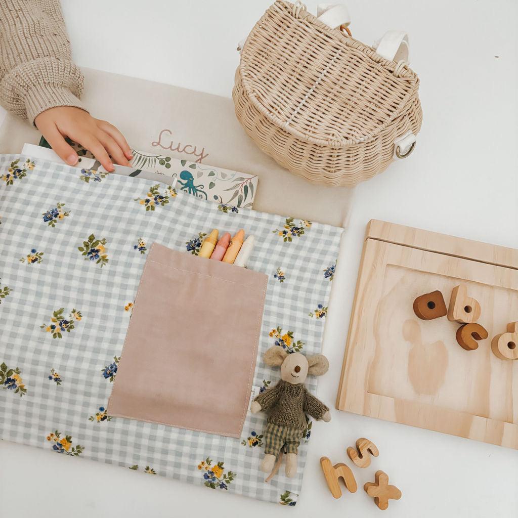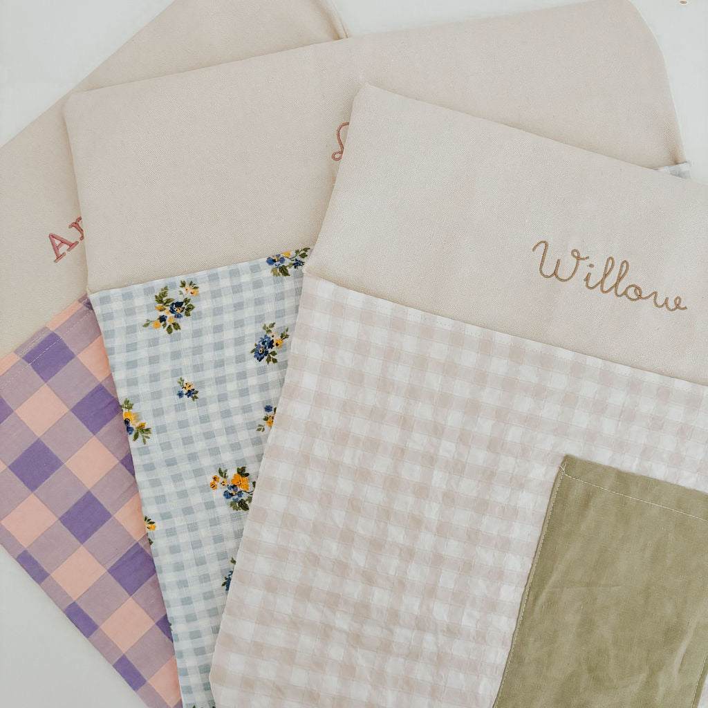 Our Personalised Chair Bags fit over the back of small-medium size chairs to create an organised and beautiful learning space at home or school.