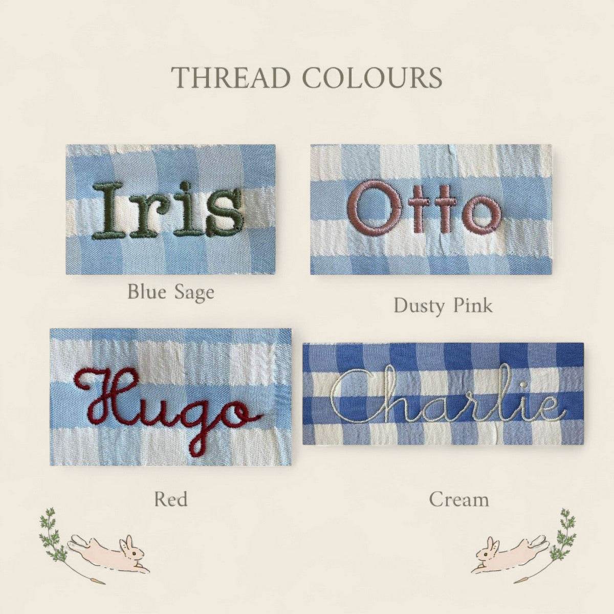Our new gingham Easter Buckets features beautiful hand-drawn embroidery designs plus your personalisation in a range of styles and colours.
