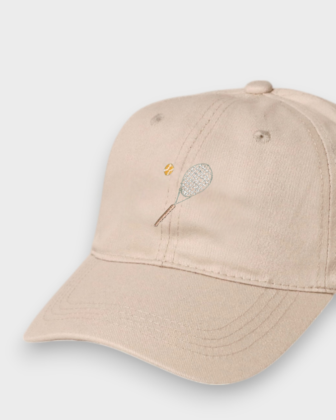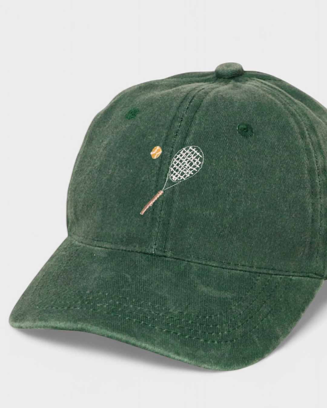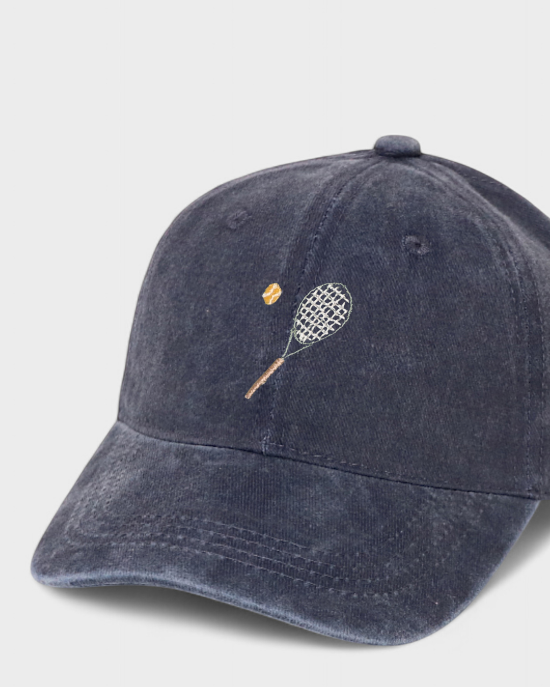 Namesake Tennis Personalised Hat features our hand-drawn Tennis Racket and Ball embroidery design on the front and your choice of personalised embroidery on the back in our custom block or script font. This personalised hat is Ideal for the Tennis Enthusiasts in your life.