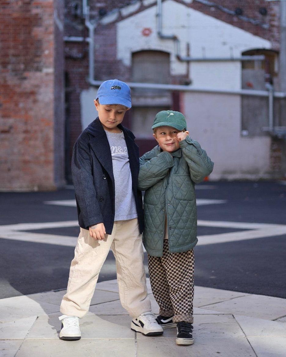 - Each hat features whimsical hand-drawn embroidery motifs on the front and optional personalisation on the back
